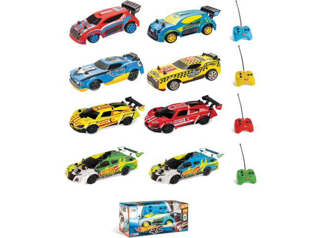 Assortiment de voitures radio commandées aux couleurs de Hot Wheels.