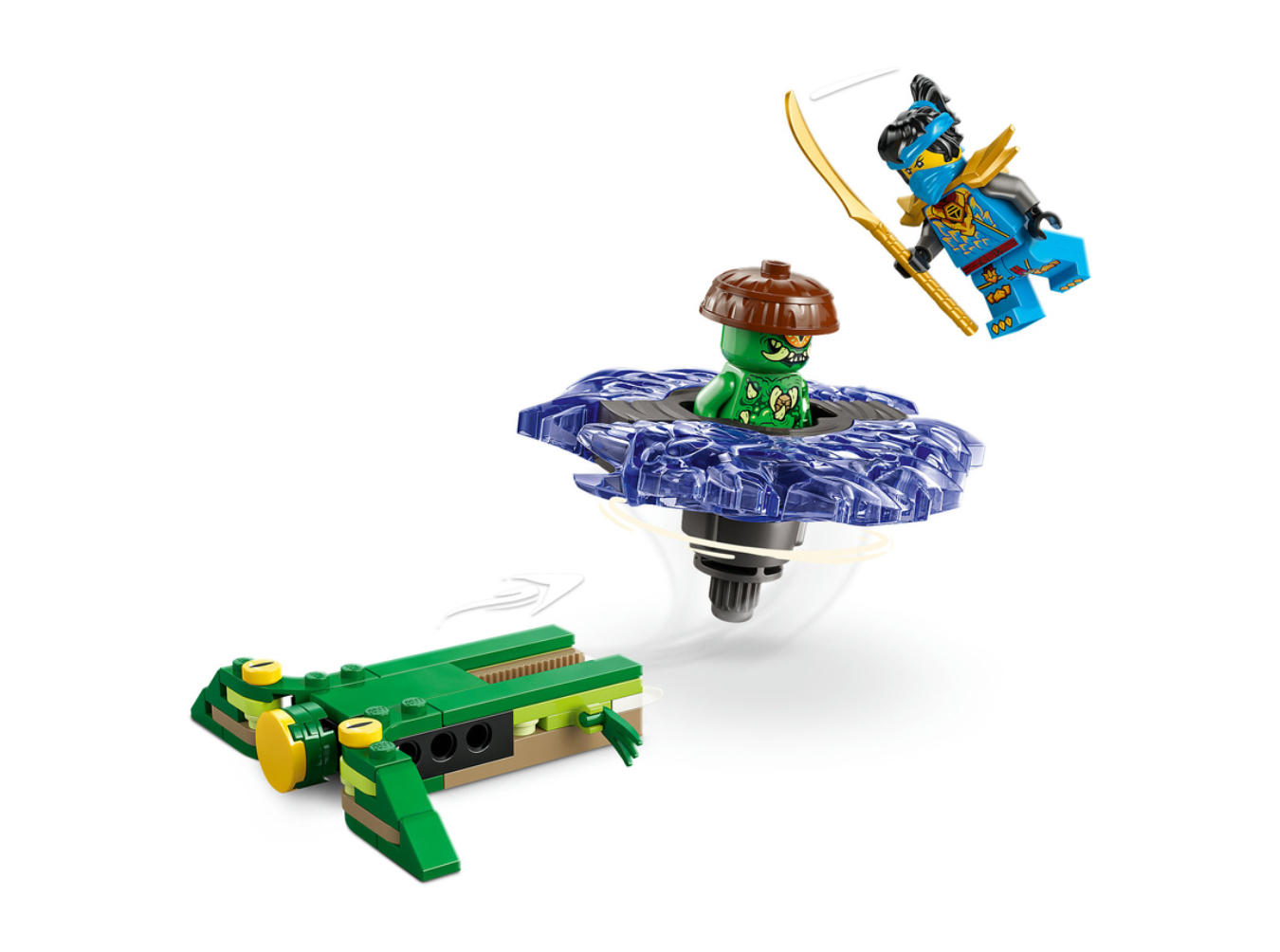Ce set LEGO inclut 2 minifigurines : Nya avec une hallebarde et un monstre mutant qui peut s’installer dans la toupie.