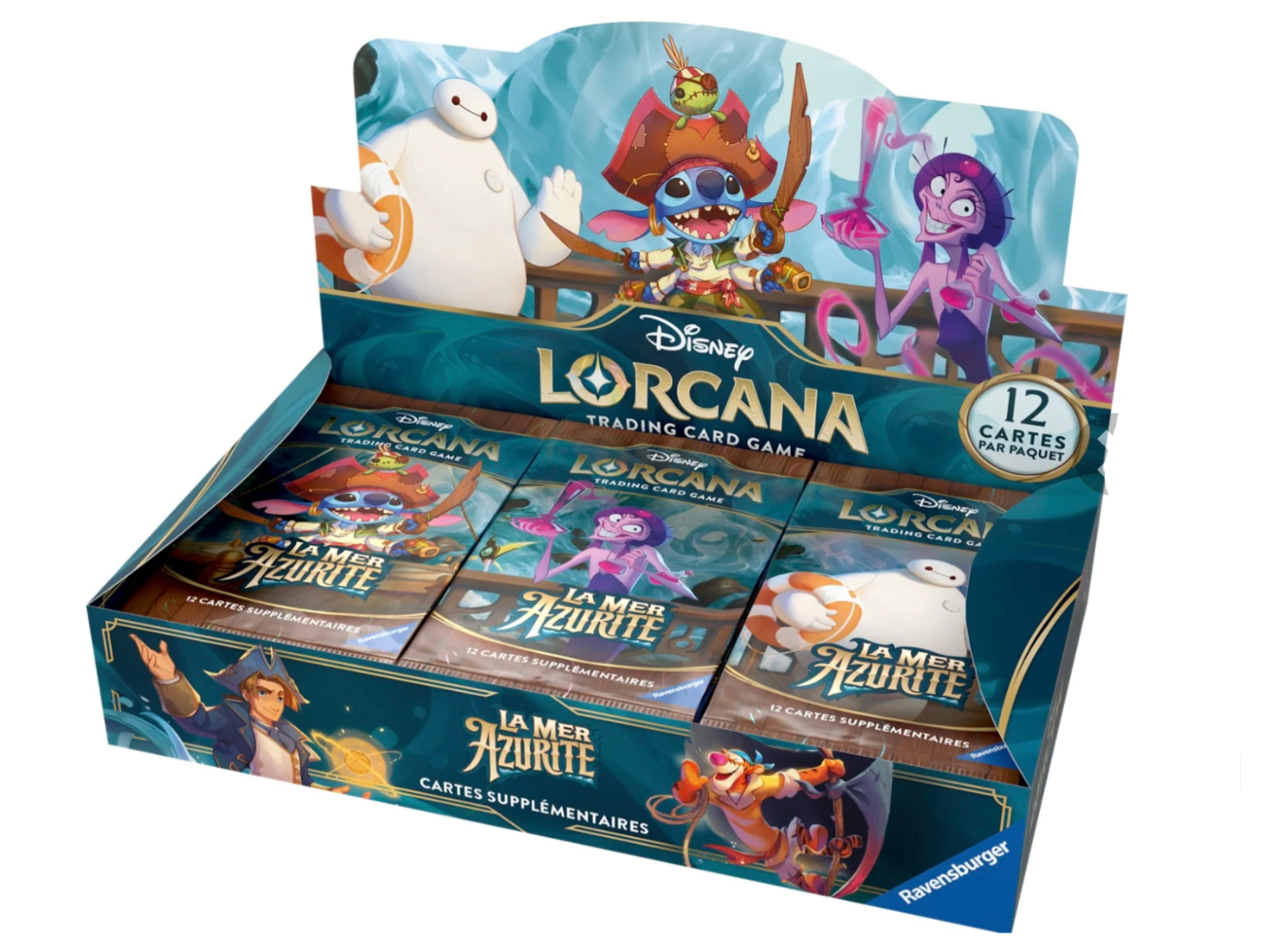 Le Disney Lorcana – Blister Chapitre 6 – La Mer Azurite te propose un assortiment de cartes à collectionner qui enrichira ta collection tout en apportant de nouvelles possibilités stratégiques. Chaque booster contient 12 cartes, réparties de la manière suivante : 6 cartes communes, 3 peu communes, 2 rares ou super rares, et 1 carte brillante de rareté aléatoire.