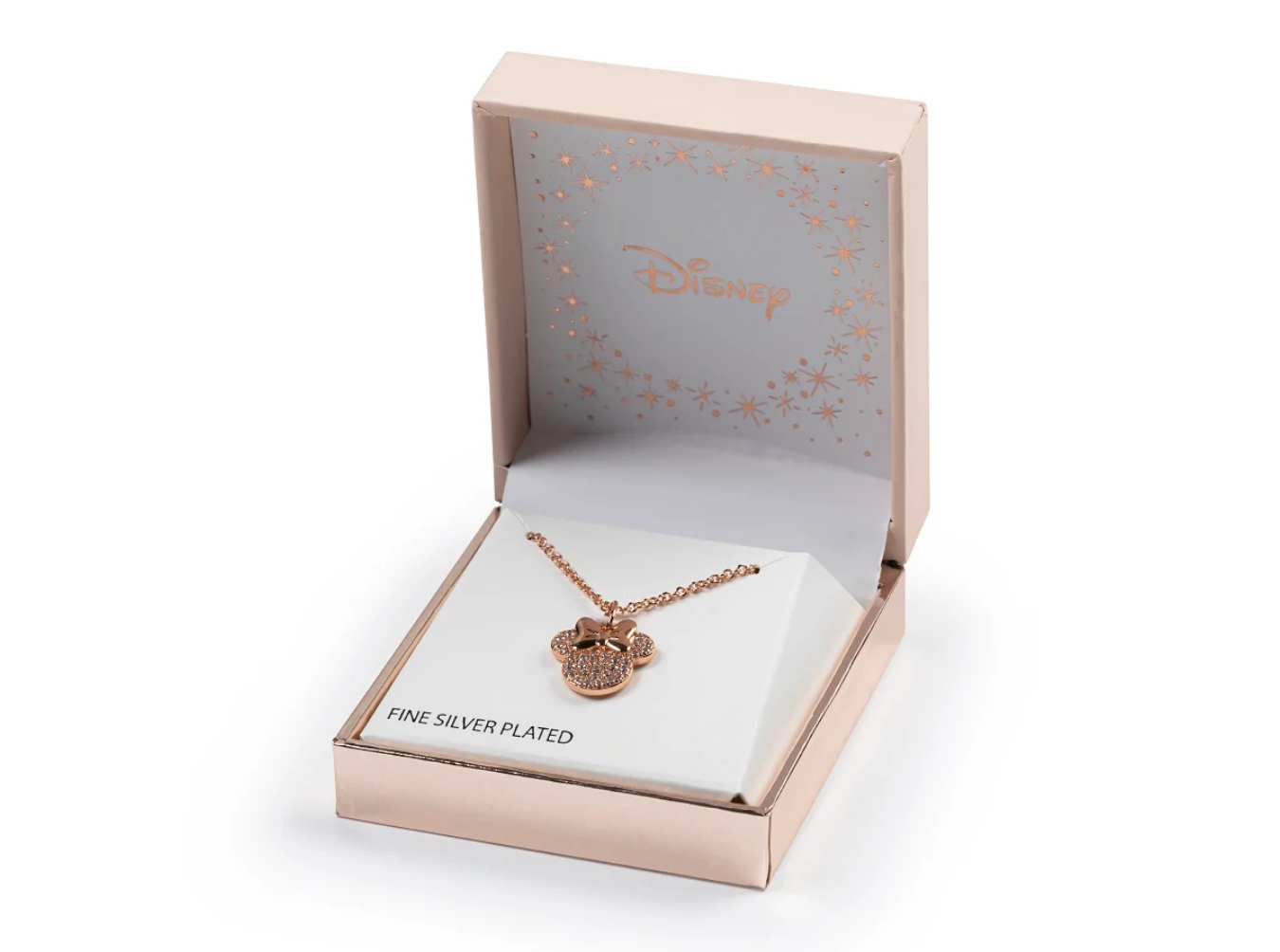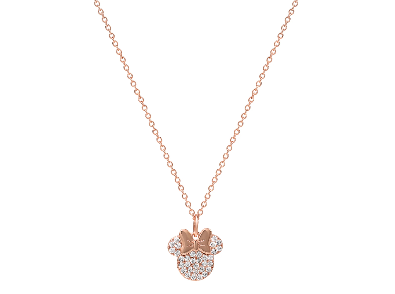 Ajoutez une touche d’élégance et de magie Disney à votre style avec ce magnifique collier Minnie Rose Gold en laiton plaqué argent.