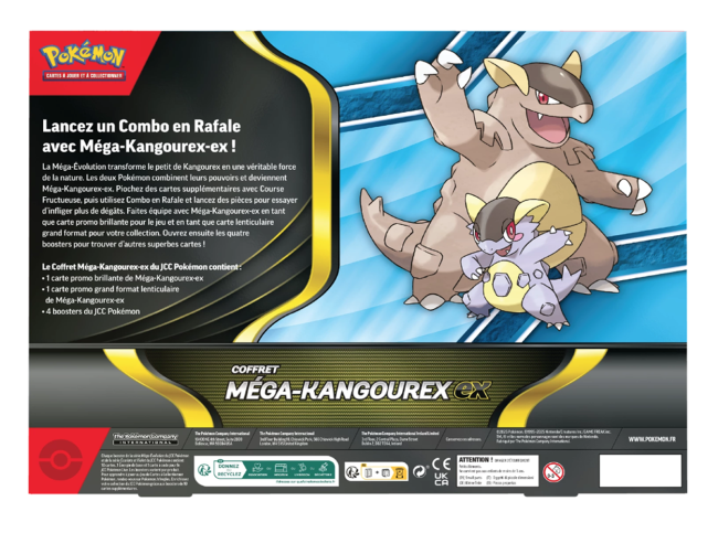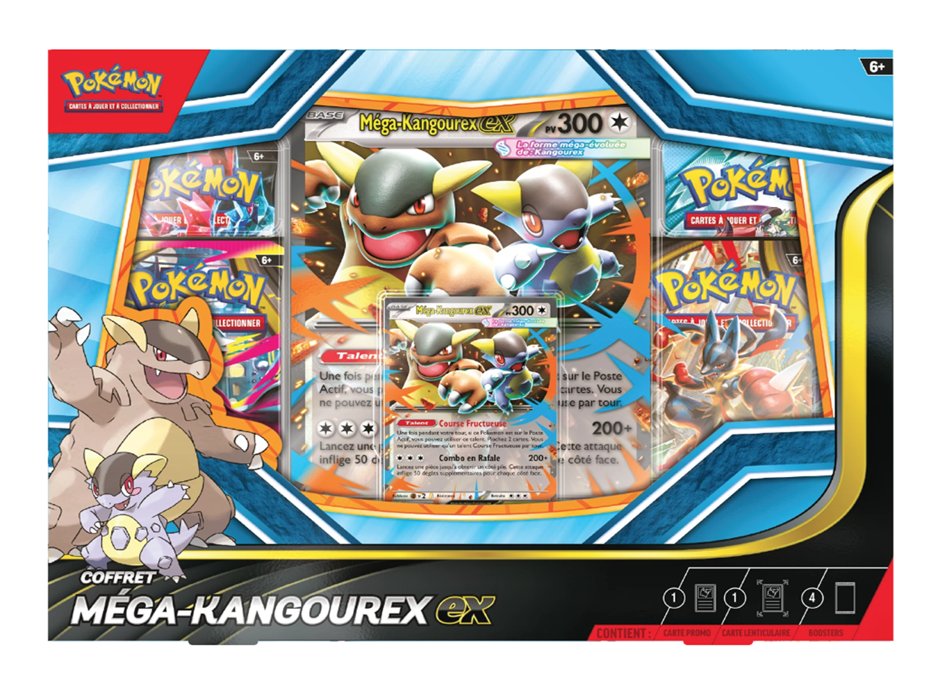 Pokémon – Coffret – Méga-Kangourex ex – en français est le coffret parfait pour les collectionneurs et joueurs du JCC Pokémon qui souhaitent obtenir des cartes rares et exclusives. La Méga-Évolution transforme le petit de Kangourex en une véritable force de la nature. Les deux Pokémon combinent leurs pouvoirs et deviennent Méga-Kangourex-ex. Il met en avant le puissant Méga-Kangourex ex et offre un contenu idéal pour enrichir ta collection ou renforcer ton deck.