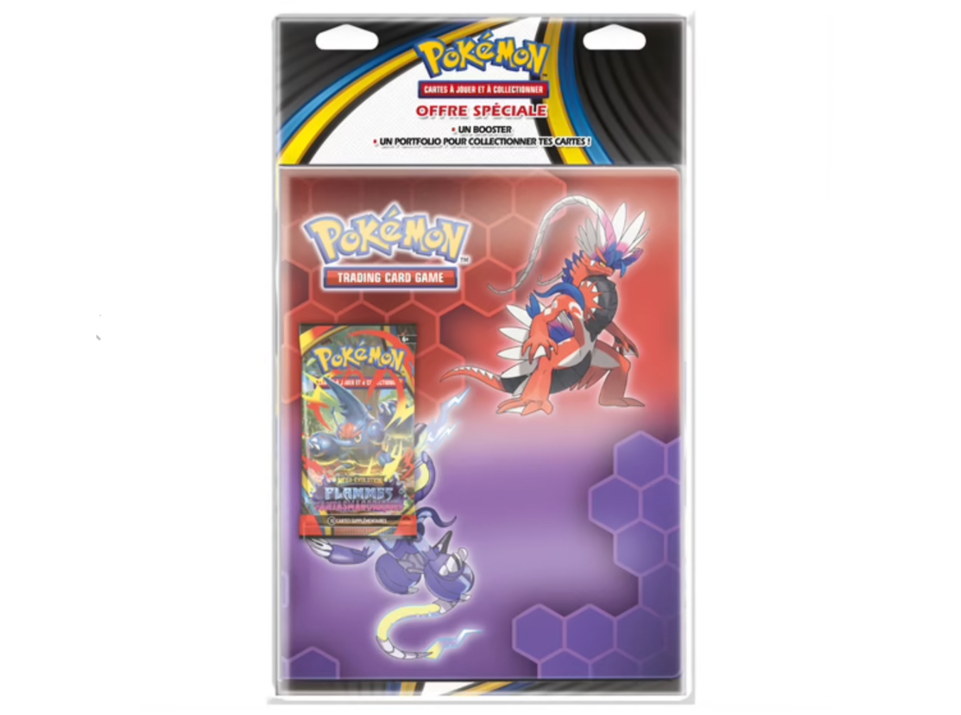 Un pack avec un cahier range-cartes pour 180 cartes et un booster série Mega-Évolution - Flammes Fanstasmagoriques du JCC Pokémon !