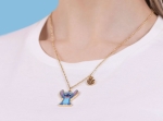 En émail avec un délicat pendentif en forme de feuille et une chaîne plaquée or.