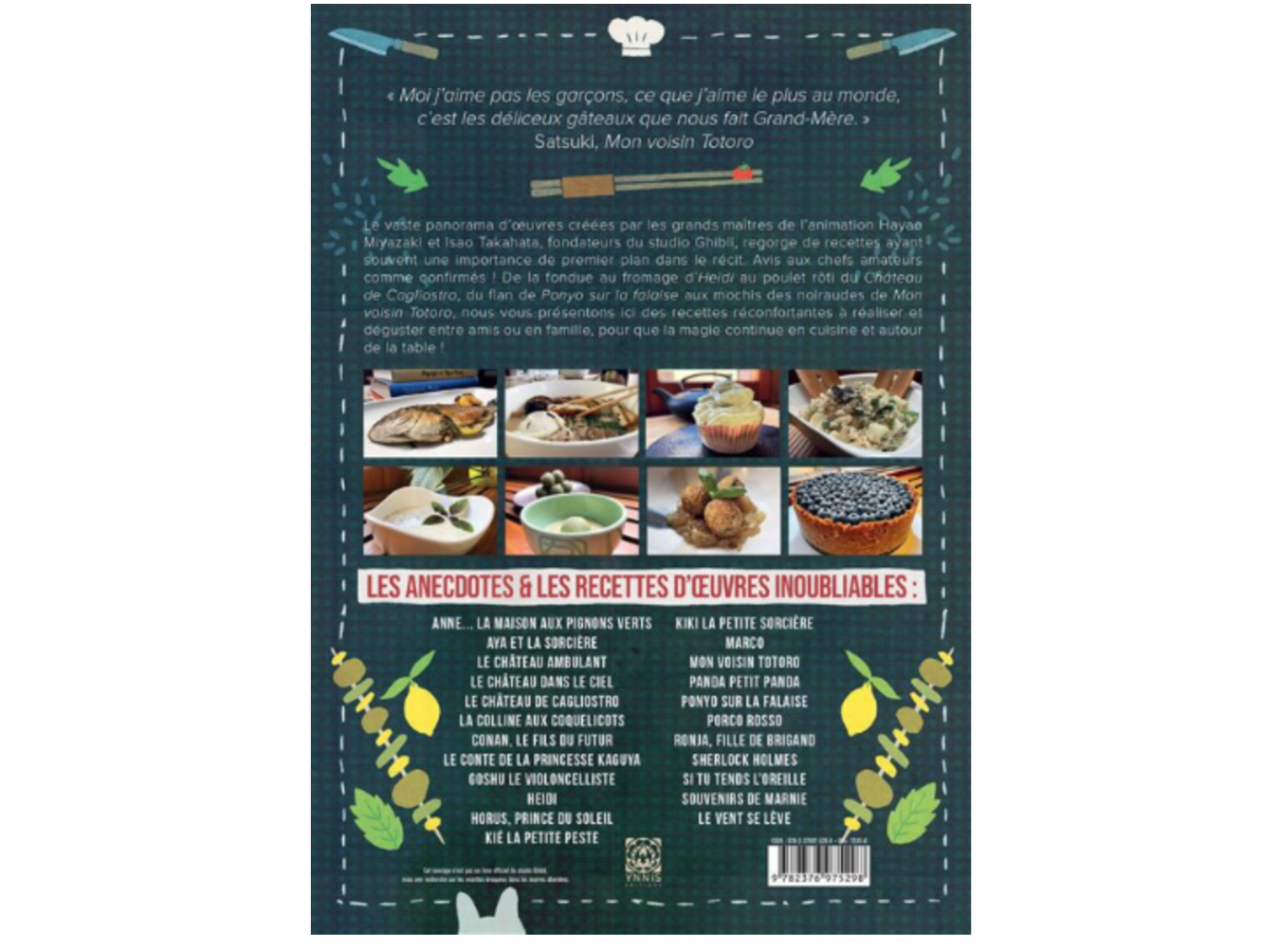 Après Les recettes des films du studio Ghibli et Les bentos des films du studio Ghibli, voici un livre de recettes originales inspirées par les œuvres du studio, et de ses deux fondateurs.