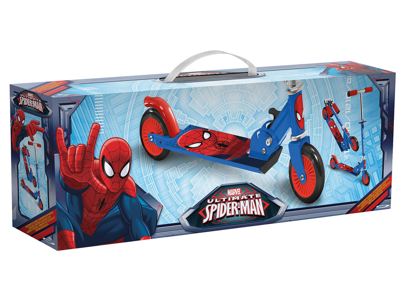 La Trottinette Pliable Spider-Man comprend un mécanisme de pliage sécurisé, une hauteur ajustable de guidon, des poignées en mousse poignées anti-pincement, le frein arrière au pied, un plateau polypropylène ergonomique haute résistance et antidérapant, des roulements à billes ABEC 5.